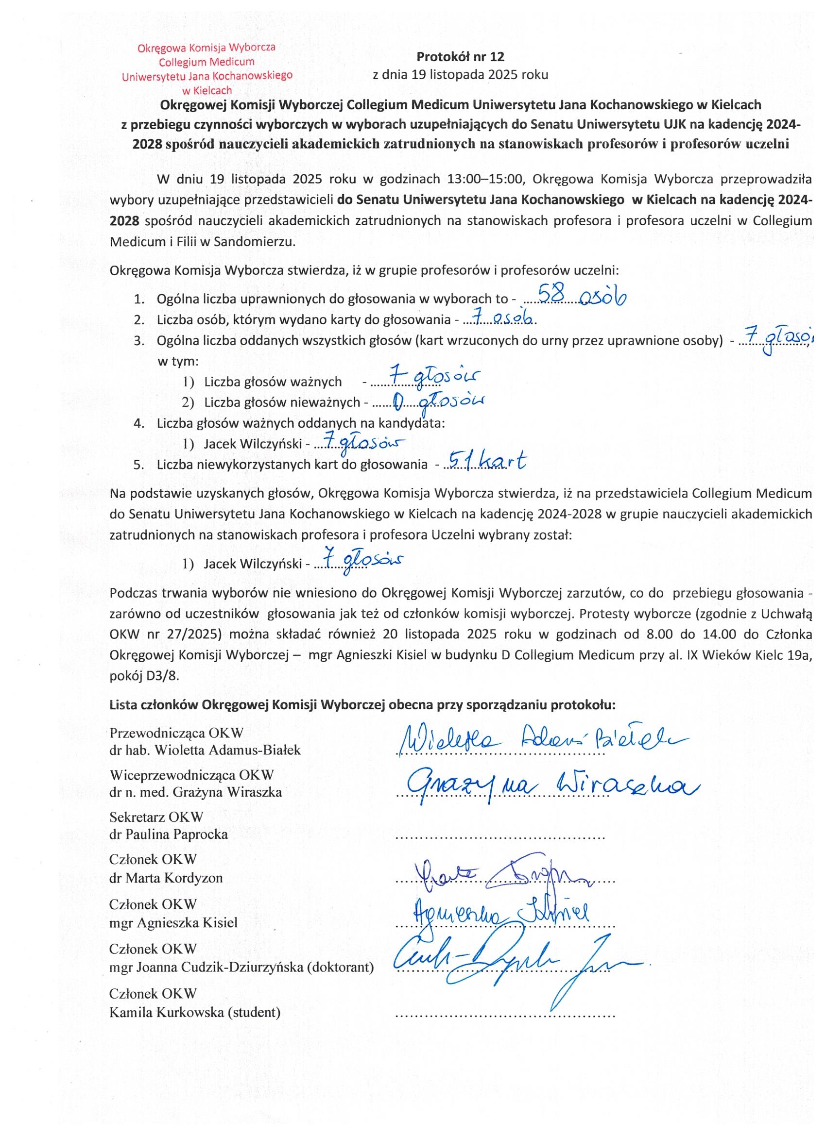 Komunikat nr 11/2025 Okręgowej Komisji Wyborczej Collegium Medicum Uniwersytetu Jana Kochanowskiego