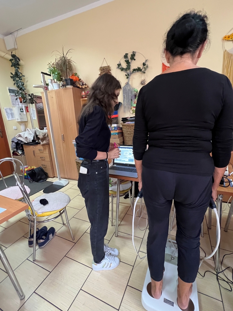 Celem wizyty było przeprowadzenie szczegółowych badań składu ciała seniorów uczestniczących w zajęciach organizowanych w Klubie obejmujące pomiary masy ciała, wysokości ciała, obwodów oraz analizę składu ciała (% zawartość tkanki tłuszczowej, ilość masy mięśniowej, poziom tkanki tłuszczowej wisceralnej). Dodatkowo, oceniano sposób żywienia klubowiczów. Badania przeprowadzono z zachowaniem wszystkich obowiązujących procedur i norm etycznych.