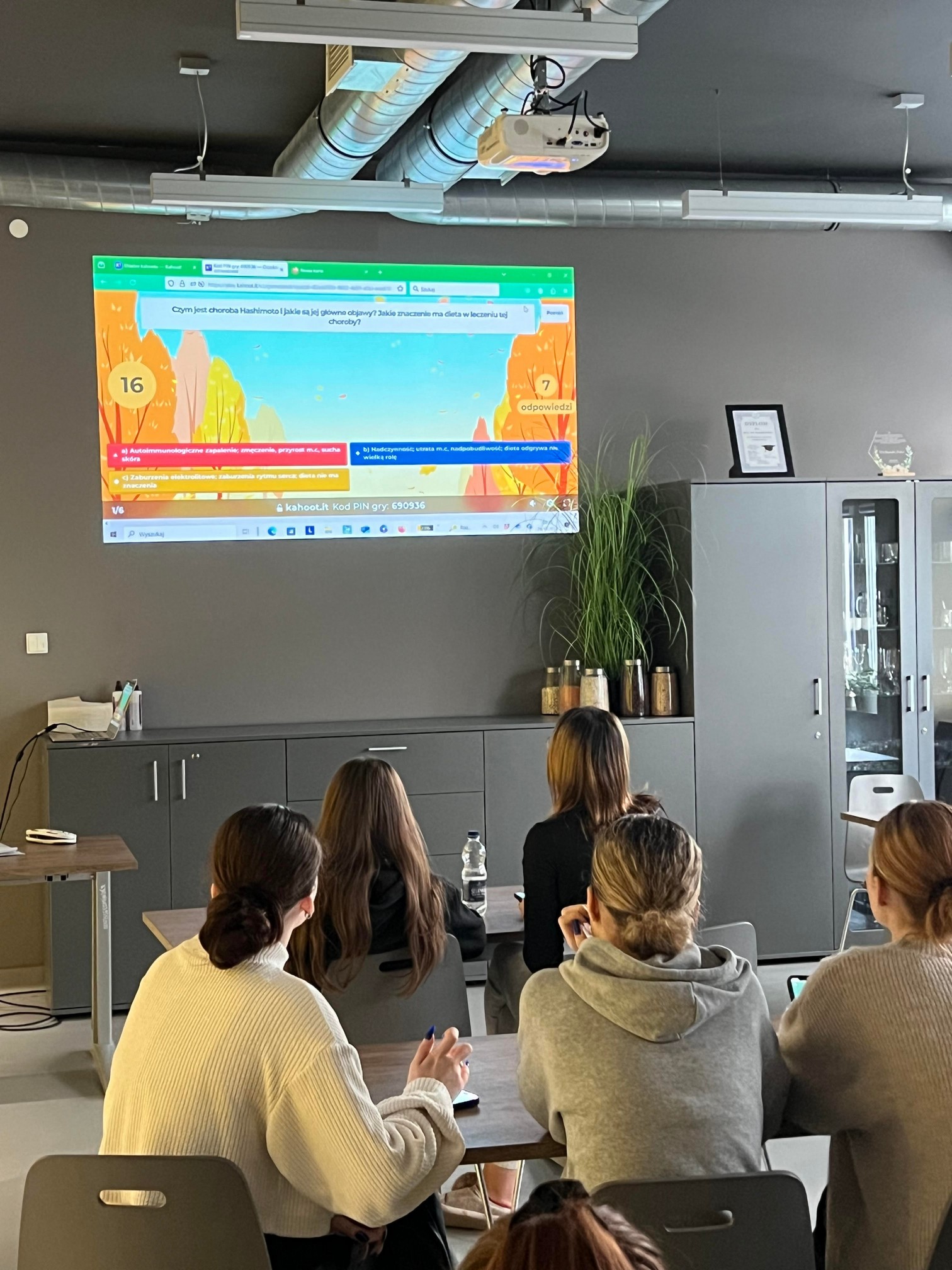 W ramach zajęć z Poradnictwa Dietetycznego z dr Agatą Bujak-Krzemińską, studenci mieli okazję wykorzystać innowacyjną aplikację Kahoot, która umożliwia interaktywną naukę poprzez quizy i gry edukacyjne. Dzięki tej platformie studenci mogli w przyjemny i angażujący sposób sprawdzić swoją wiedzę w temacie zasad dietoterapii chorób tarczycy, a także zgłębić tematykę związaną z poradnictwem dietetycznym.