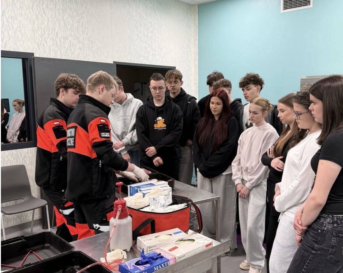 W dniu 24.03.2026 roku odbyło się wydarzenie zorganizowane przez kierunek Ratownictwo Medyczne w ramach współpracy z podmiotami zewnętrznymi. W spotkaniu uczestniczyli uczniowie klas 1–3 o profilu ratownictwo medyczne z Liceum Ogólnokształcącego im. ks. kard. Stefana Wyszyńskiego w Staszowie.