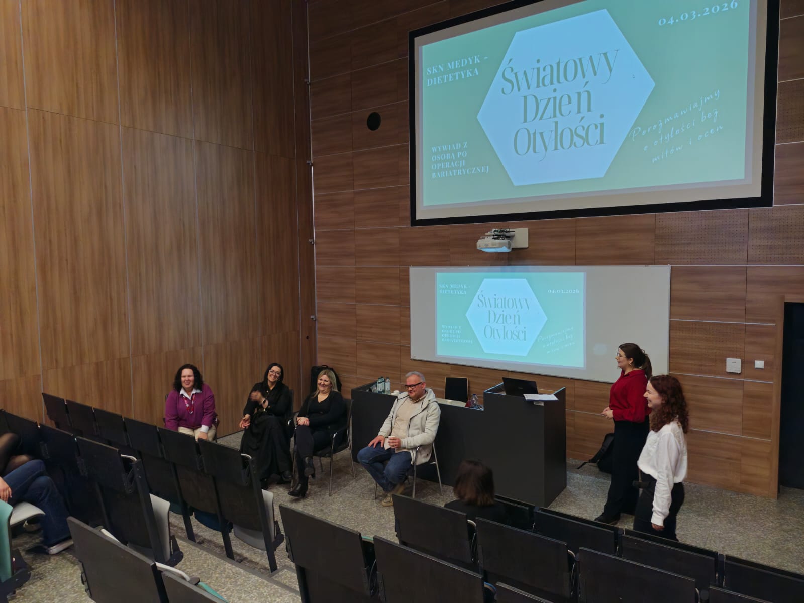 Wydarzenie zostało zorganizowane i poprowadzone przez studentki Katarzynę Snoch oraz Wiktorię Ożarowską pod opieką i przy wsparciu dr Kamili Sobaś. Spotkanie stworzyło przestrzeń do merytorycznej dyskusji, wymiany doświadczeń oraz budowania większego zrozumienia wobec osób chorujących na otyłość.