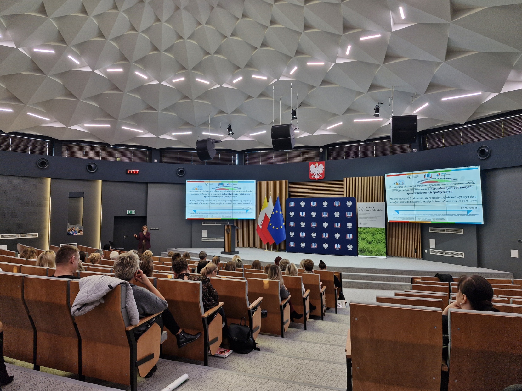 W wydarzeniu wzięły udział nasze studentki: Karolina Kozłowska (2 rok, studia II stopnia), Anna Piotrowska (3 rok, studia I stopnia) oraz Vlada Matysik (3 rok, studia I stopnia). Podczas konferencji prowadziły one analizę składu ciała uczestników, oferując wszystkim chętnym możliwość poznania wyników pomiarów oraz ich interpretacji. Działanie to stanowiło doskonałą okazję do doskonalenia umiejętności praktycznych oraz rozwijania kompetencji komunikacyjnych w zakresie edukacji zdrowotnej. Stanowisko studentek cieszyło się dużym zainteresowaniem. Uczestnicy mogli również uzyskać praktyczne porady dotyczące zasad zdrowego żywienia oraz zabrać przygotowane przez studentki materiały edukacyjne.