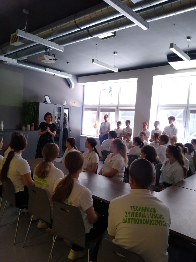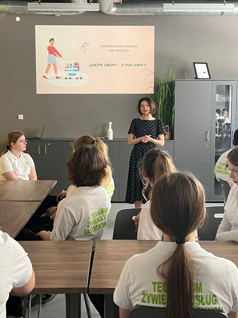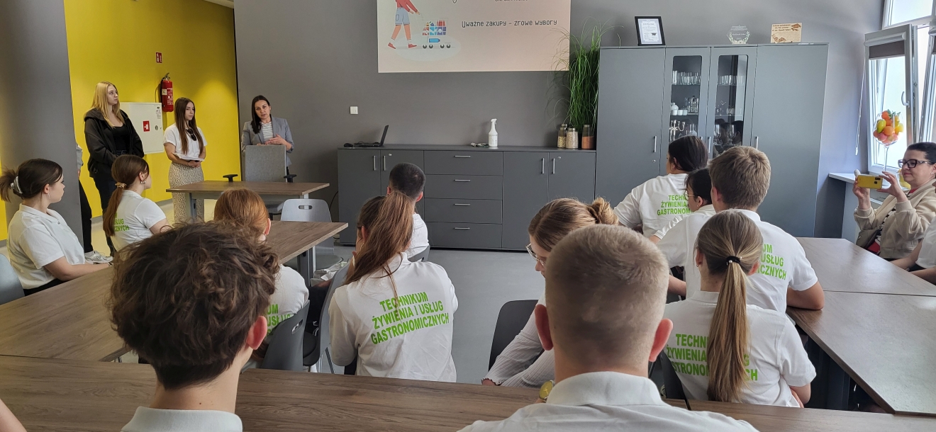 Istotnym punktem wizyty był warsztat edukacyjny, podczas którego dr Magdalena Pietraszkiewicz wygłosiła wykład pt. „Uważne zakupy – zdrowe wybory”. Po części teoretycznej uczniowie mieli okazję wykorzystać zdobytą wiedzę w praktyce, analizując rzeczywiste etykiety produktów żywnościowych podczas zajęć warsztatowych.